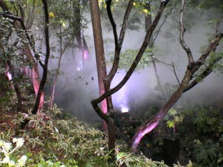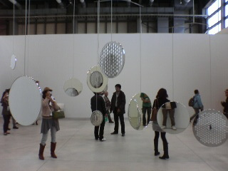 今回の横トリで一番好きだった展示。何枚かがスピーカになっていて、ヘンテコな音を定期的に発する。円盤の位置が微妙に変わったり回転する。音が飛び交かう。壁に反射する。床付近にウーハがあって低音ブンブン言う。という、まんま音響な作品。